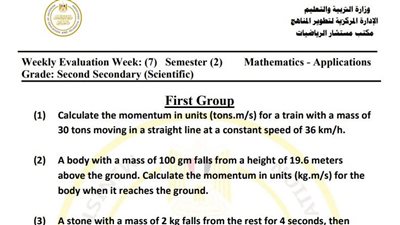 مراجعات نهائية.. أسئلة تقييم الأسبوع السابع الرياضيات التطبيقية ثانية ثانوي
