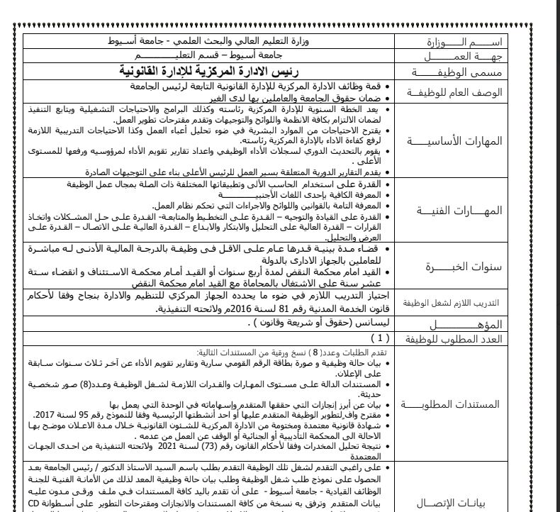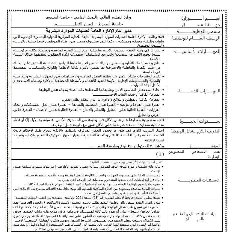 - وظائف شاغرة جامعة أسيوط