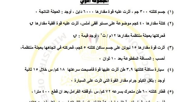 - التقييم الاسبوعي للصف الثاني الثانوي فيزياء