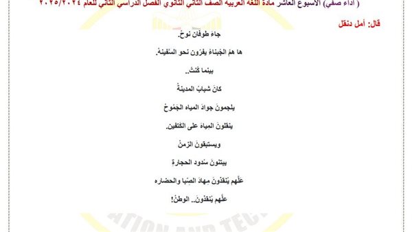 - أولى ثانوي اللغة العربية ترم ثاني تقييم الأسبوع العاشر