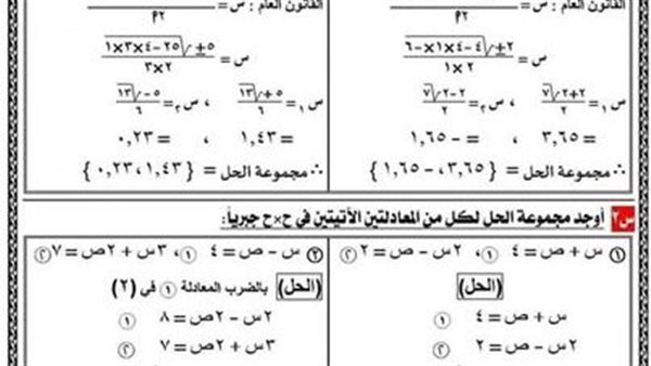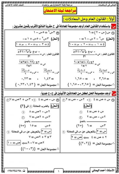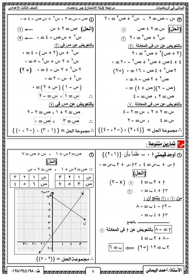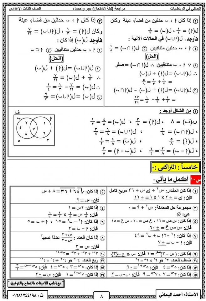 - مراجعة ليلة امتحان الجبر في 8 ورقات