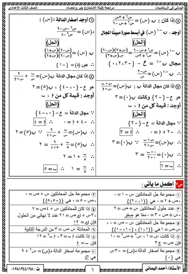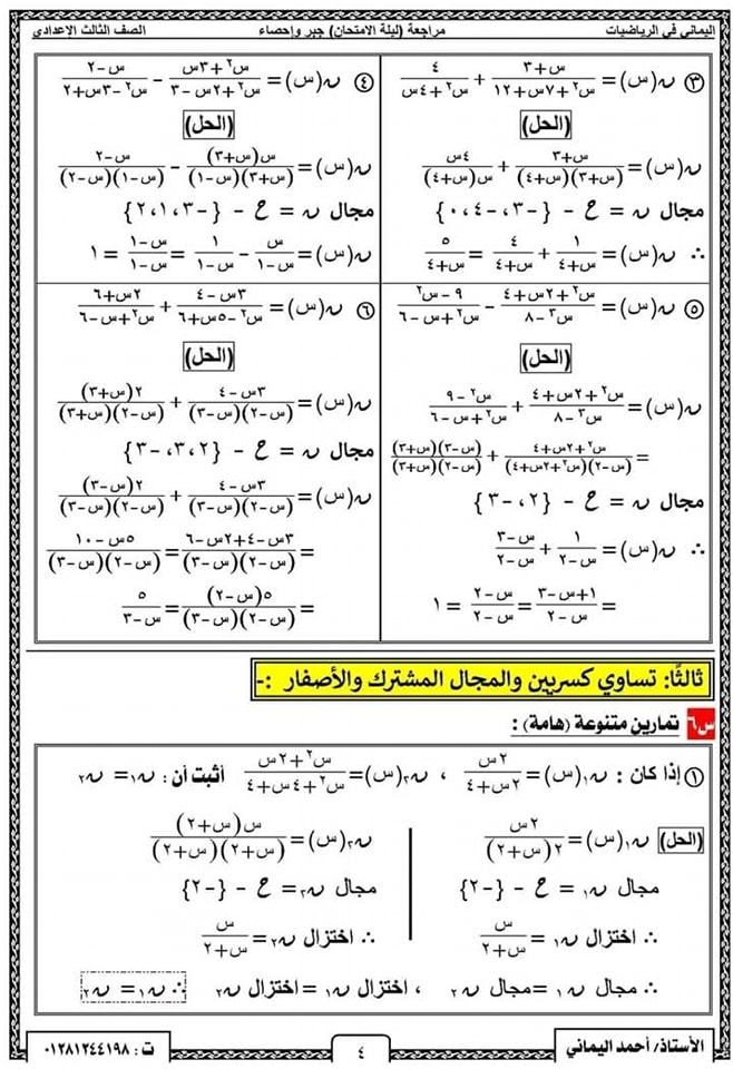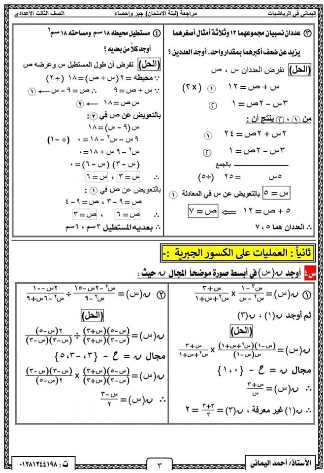 - مراجعة نهائية الجبر ثالثة إعدادي