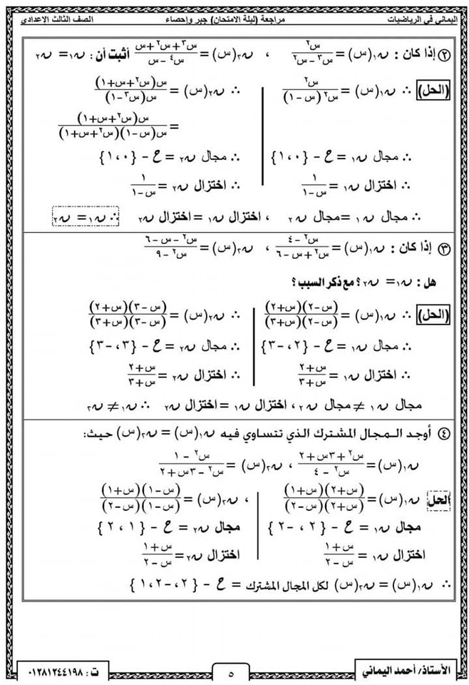 - مراجعات نهائيه جبر ثالثة إعدادي