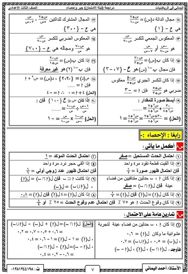- الرياضيات مراجعات نهائية الصف الثالث الإعدادي
