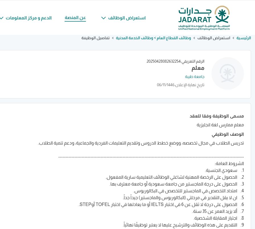 - الشروط المطلوبة في وظائف جامعة طيبة