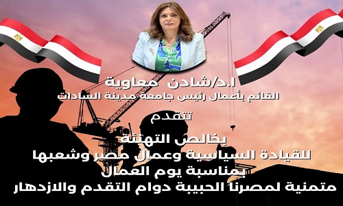 - جامعة السادات تهنئ الرئيس السيسي بعيد العمال