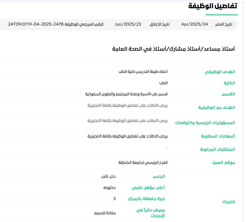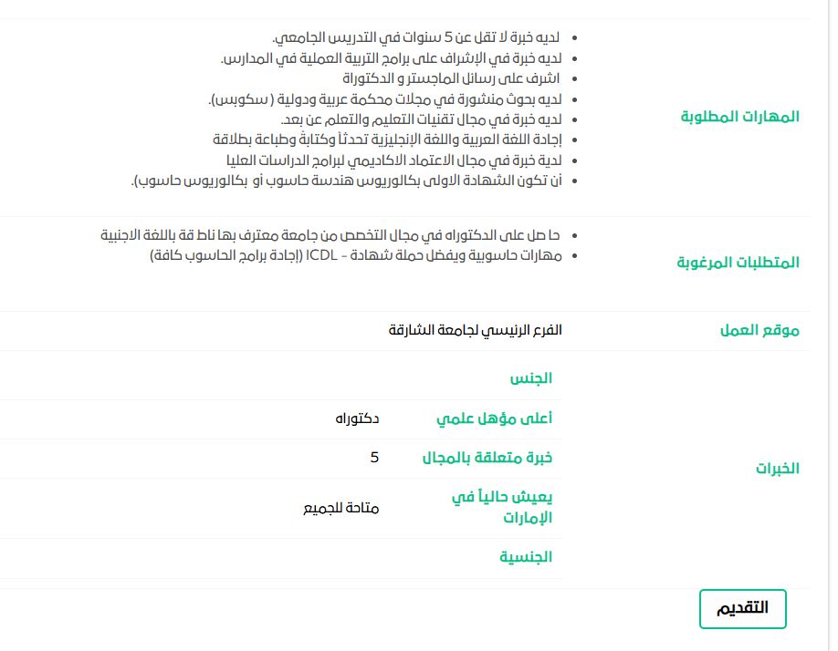 - الشروط المطلوبة في وظائف جامعة الشارقة