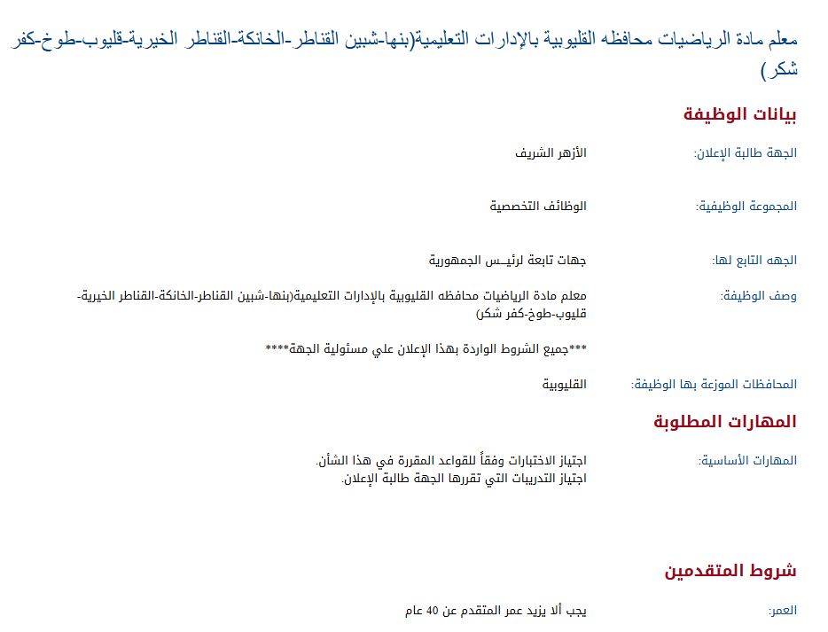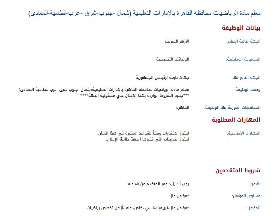 - شروط المتقدمين على وظائف معلمي الأزهر