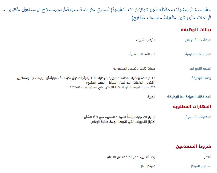 - تعيين معلمي رياضيات الأزهر