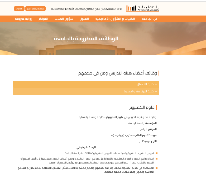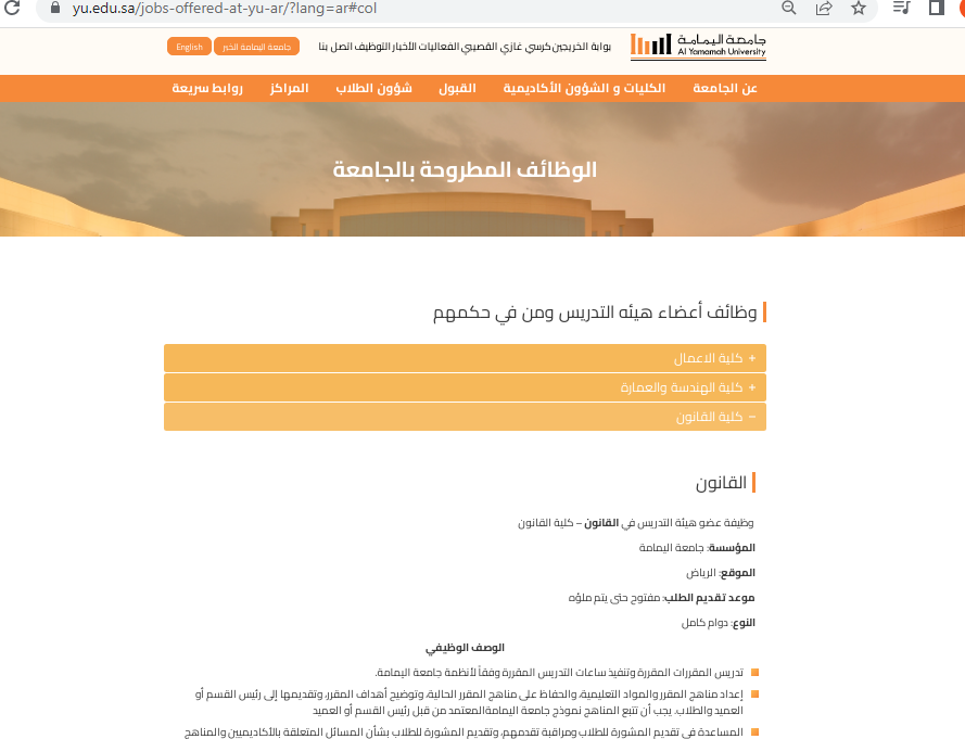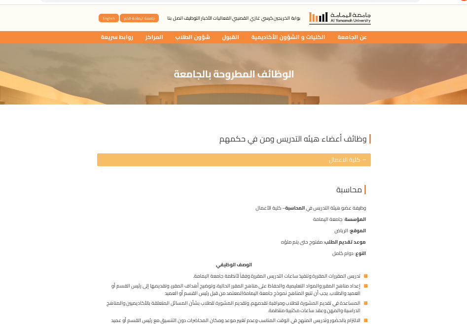 لمطالعة نص إعلان وظيفة جامعة اليمامة والتقديم اضغط هنا