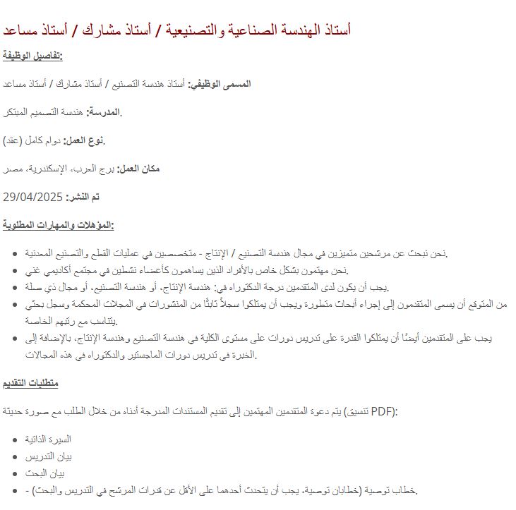 - فرص عمل في الجامعات المصرية