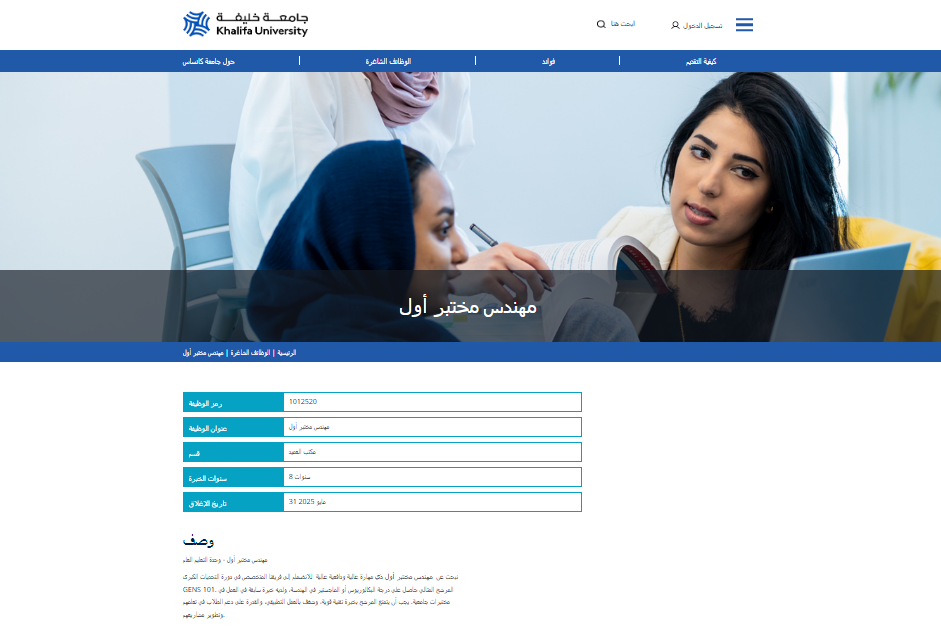 لمطالعة نص إعلان وظيفة جامعة خليفةوالتقديم اضغط هنا