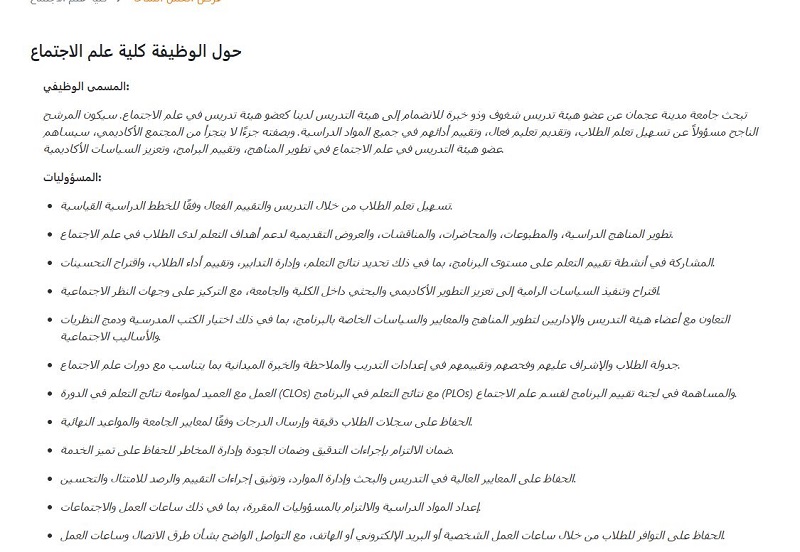 - الشروط المطلوبة في وظائف جامعة عجمان