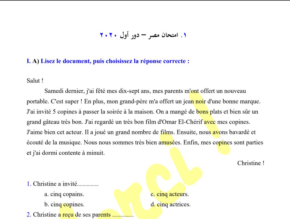 - مراجعات نهائيه امتحان اللغة الفرنسية ثانوية عامة