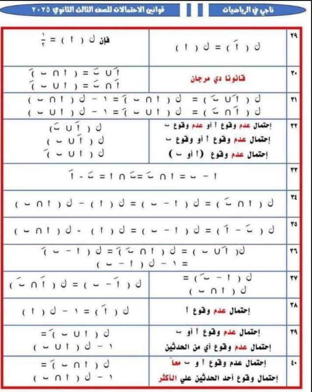 - ملخص قوانين الاحتمالات في 6 ورقات لـ الثانوية العامة
