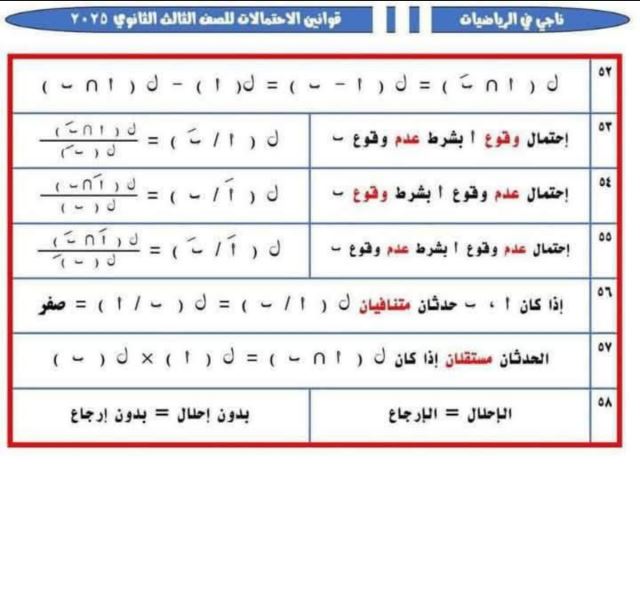 الثانوية العامة 2025.. ملخص قوانين الاحتمالات في 6 ورقات