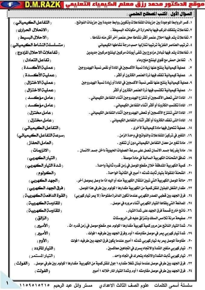 أقوى مراجعة في ليلة امتحان مادة العلوم الشهادة الاعدادية