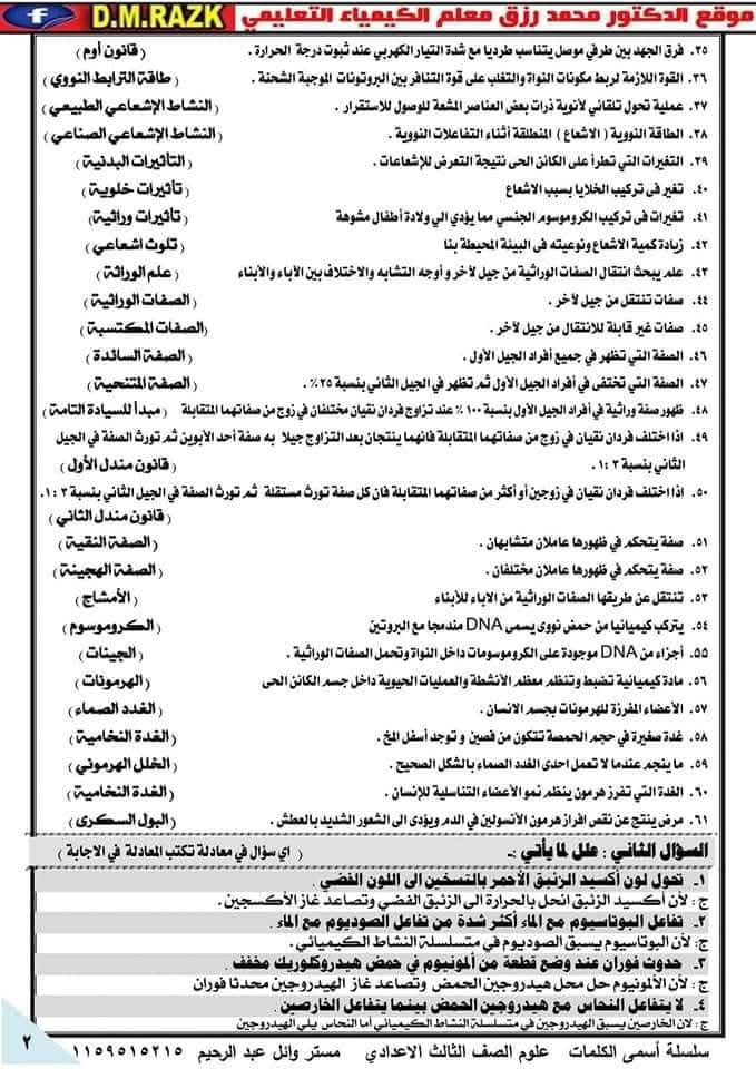 - بالاجابات مراجعة ليلة امتحان العلوم
