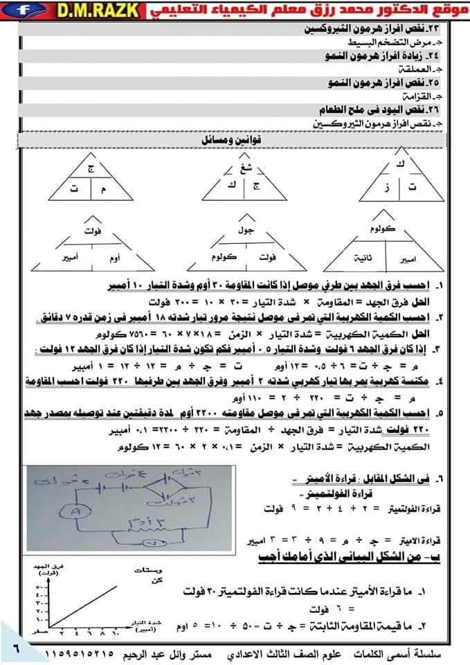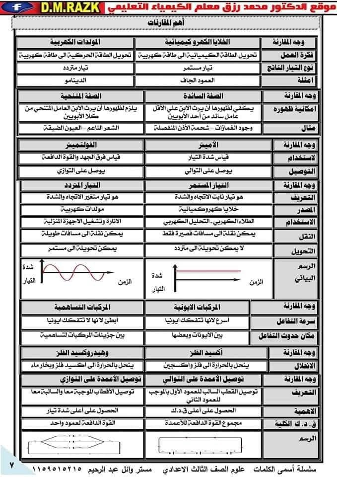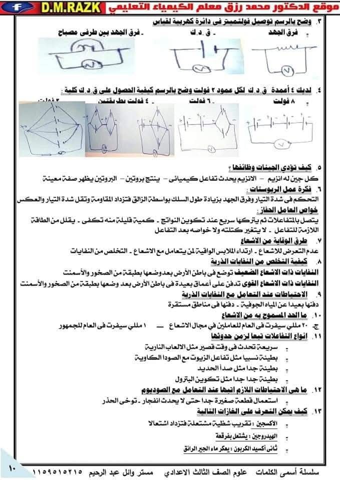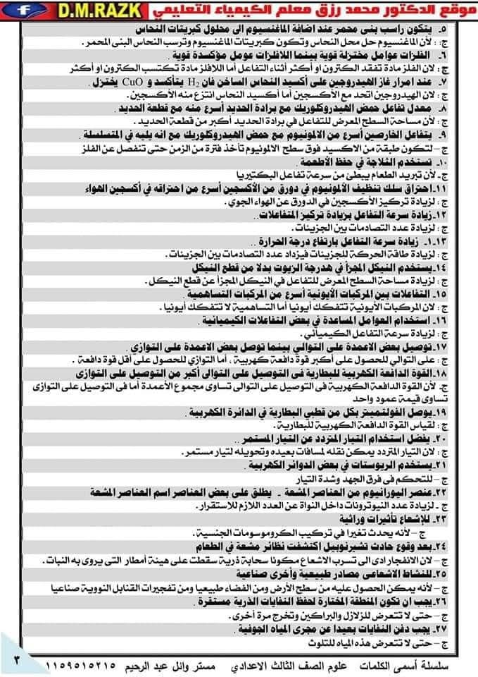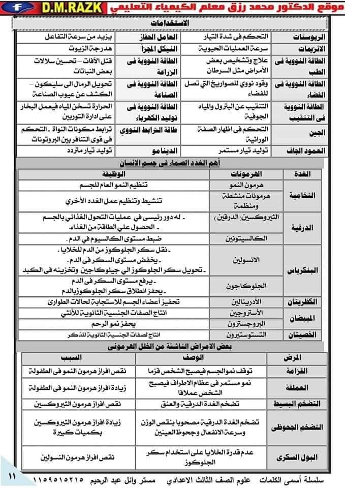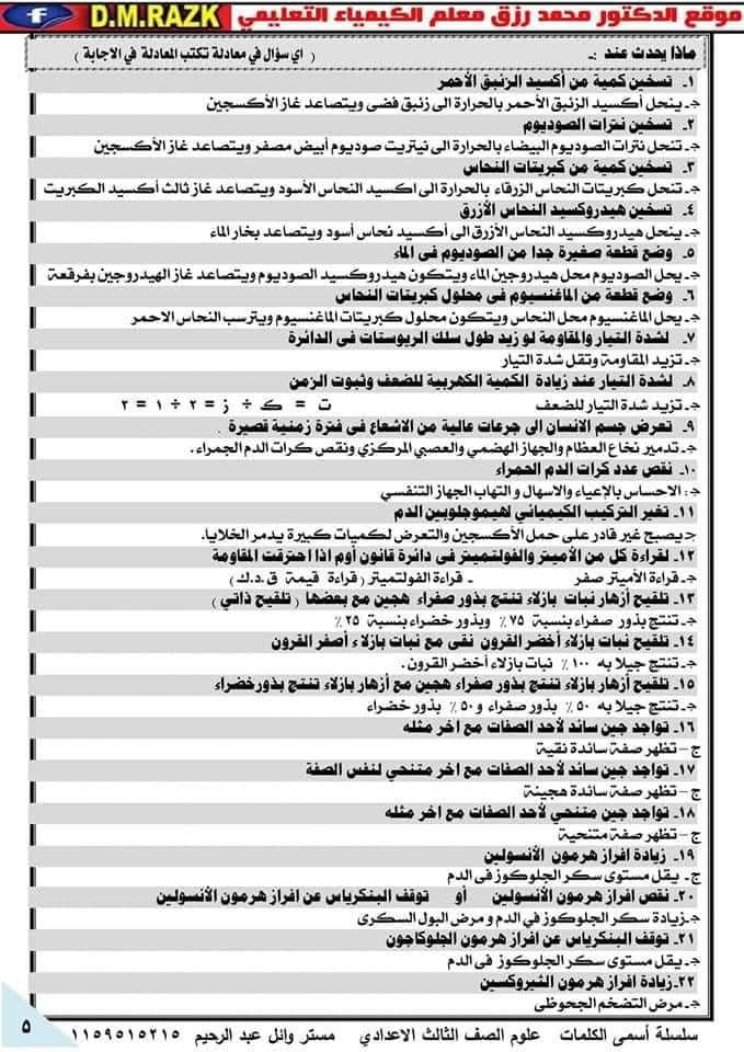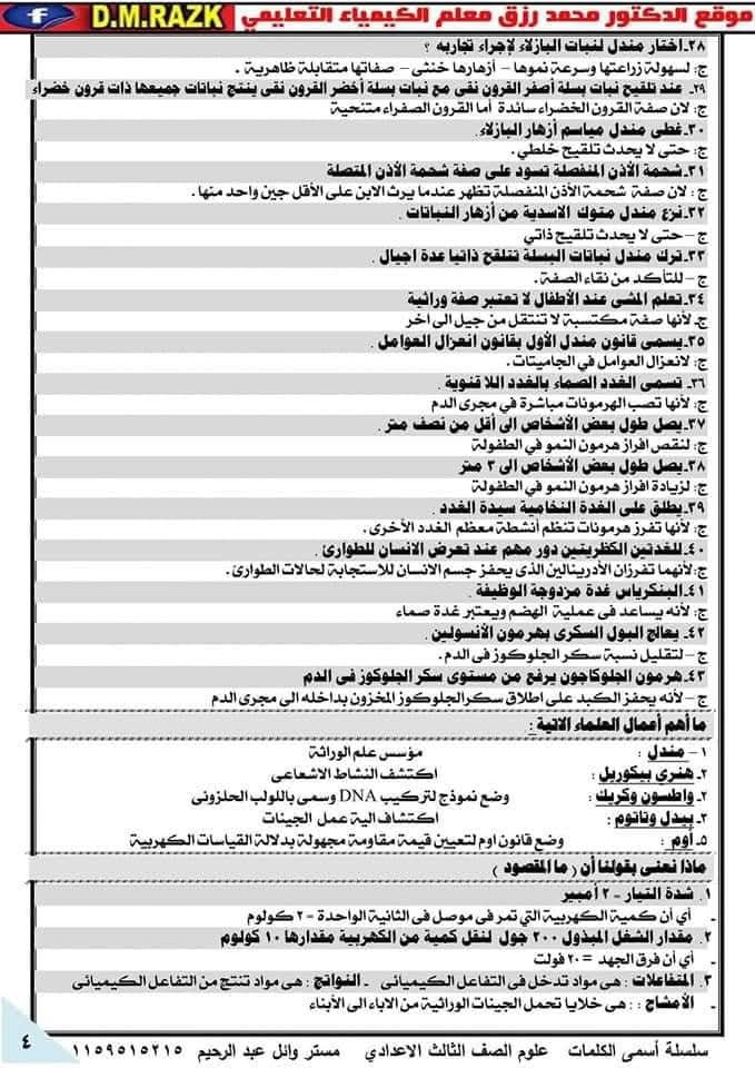 - العلوم مراجعات نهائية الصف الثالث الإعدادي