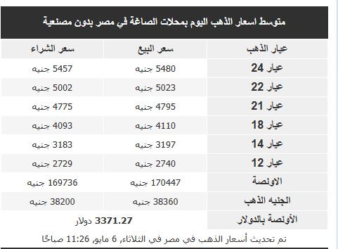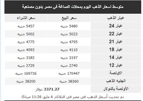 - سعر الذهب اليوم في مصر في محلات الصاغة