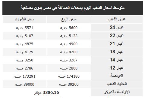 - اسعار الذهب فى مصر
