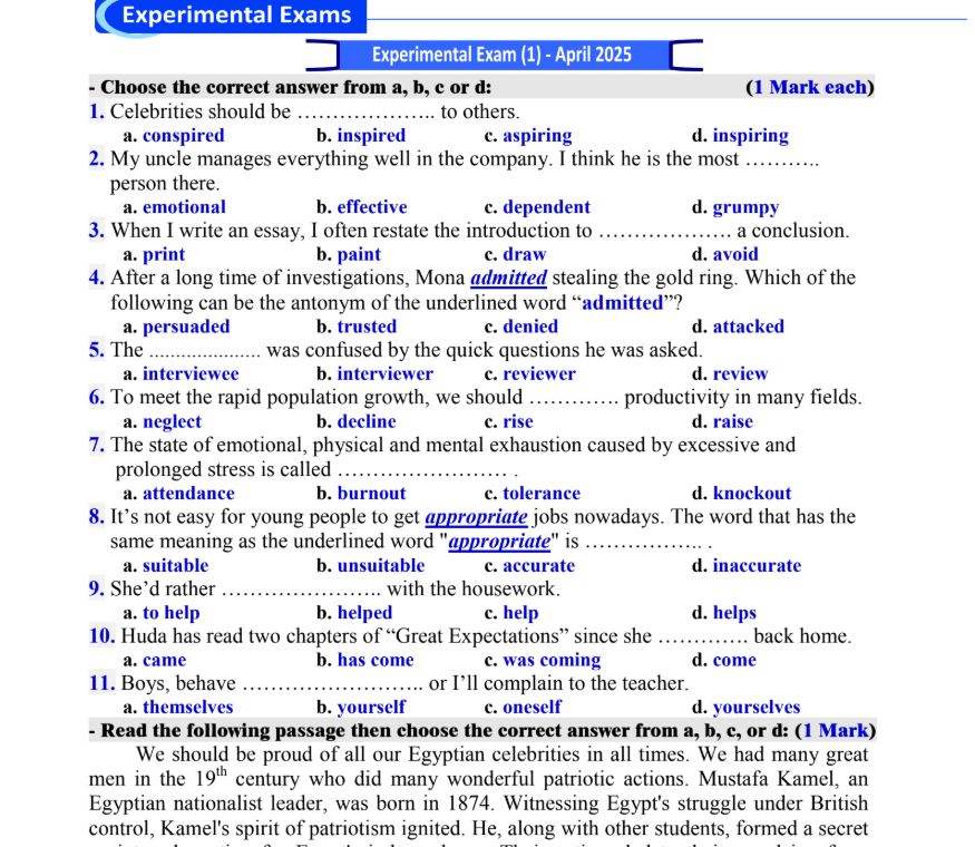 بالاجابات نموذج الوزارة في اللغة الإنجليزية لـ الثانوية العامة 2025