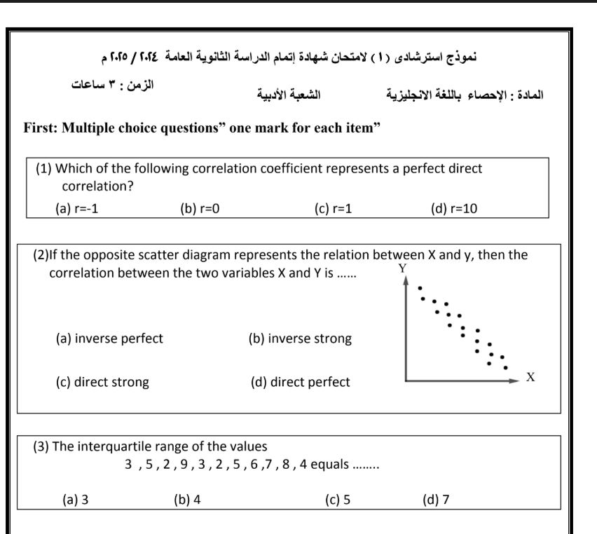 - مراجعات نهائيه امتحان الاحصاء لغات ثانوية عامة