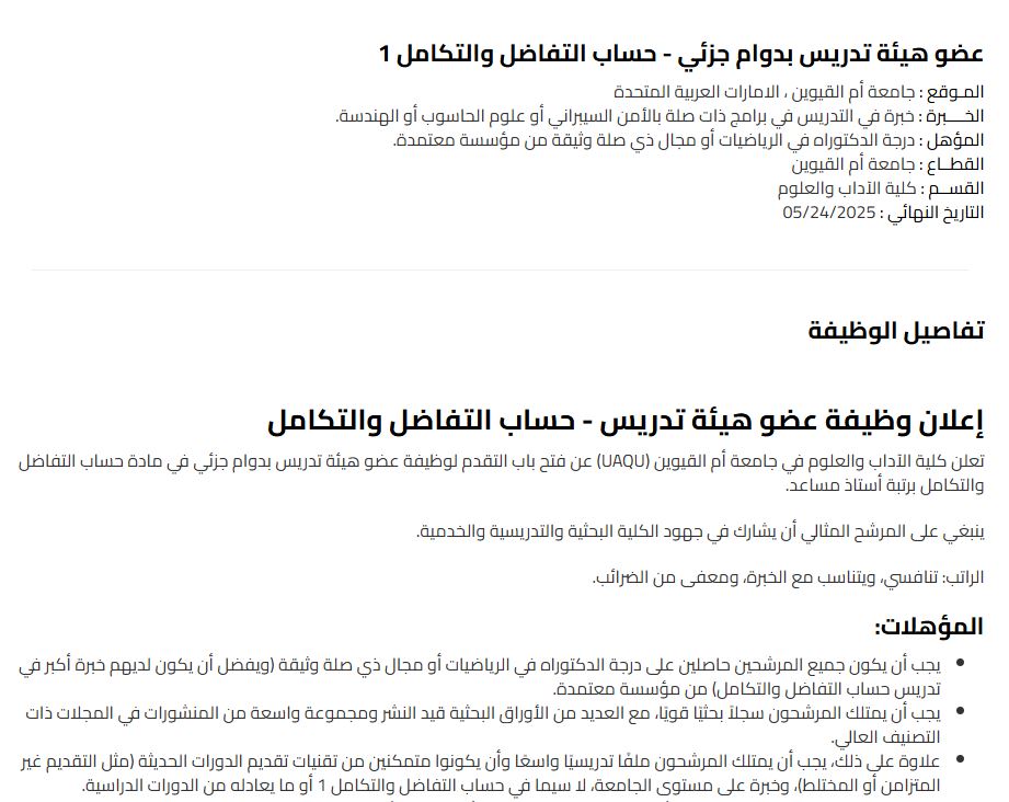 تفاصيل وظيفة عضو هيئة تدريس - حساب التفاضل والتكامل