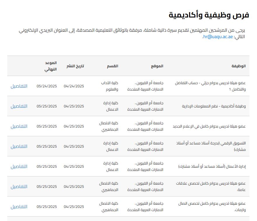 التخصصات المطلوبة في وظائف جامعة أم القيوين