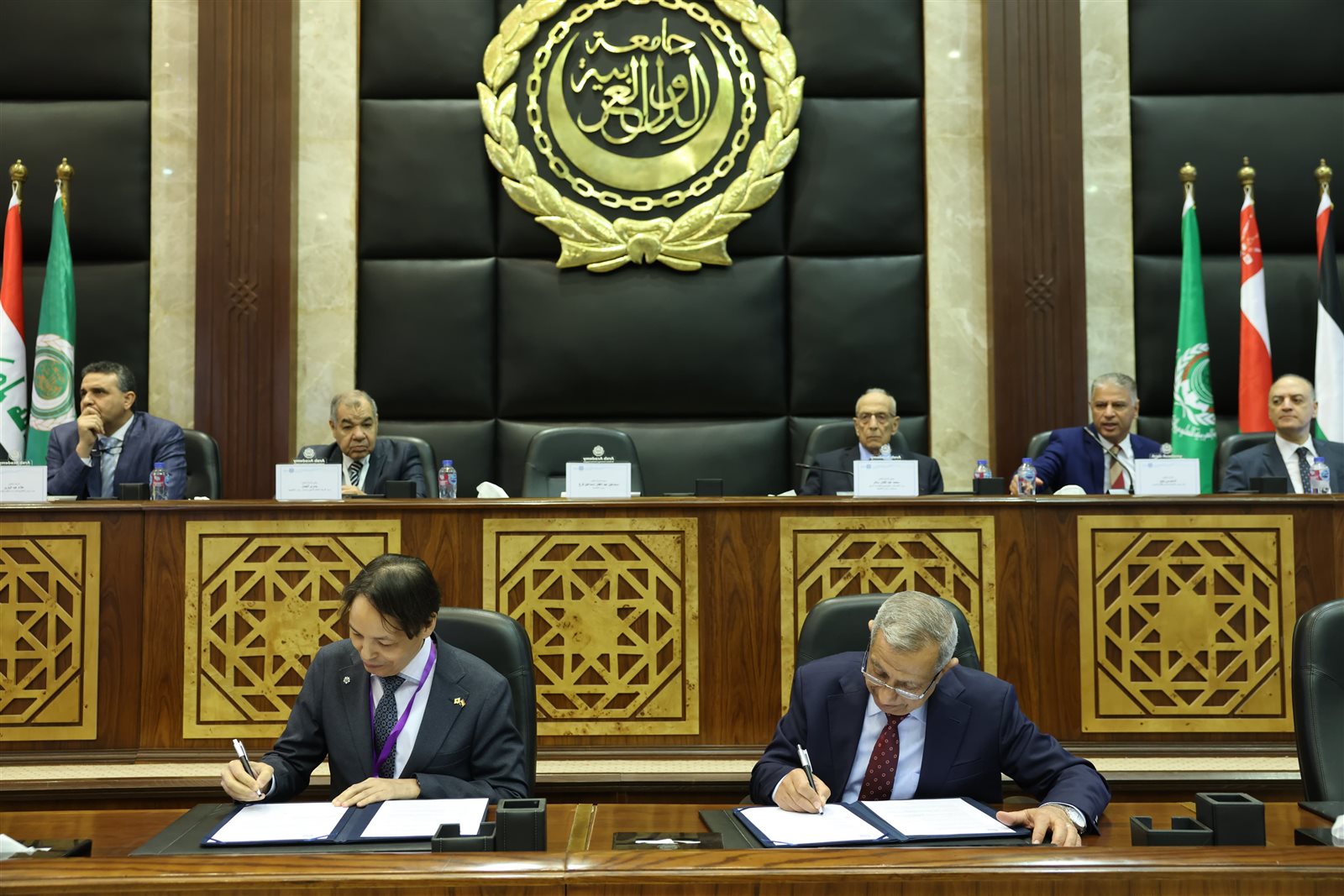 تم توقيع المذكرة الأولى بين الأكاديمية العربية للعلوم والتكنولوجيا والمركز العربي الياباني للتدريب والتنمية المستدامة، بحضور وتوقيع كل من: