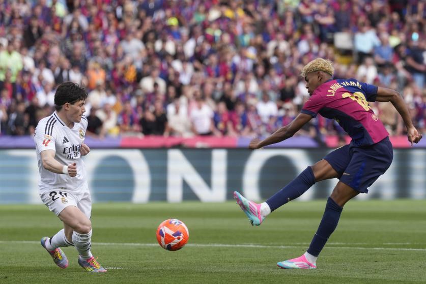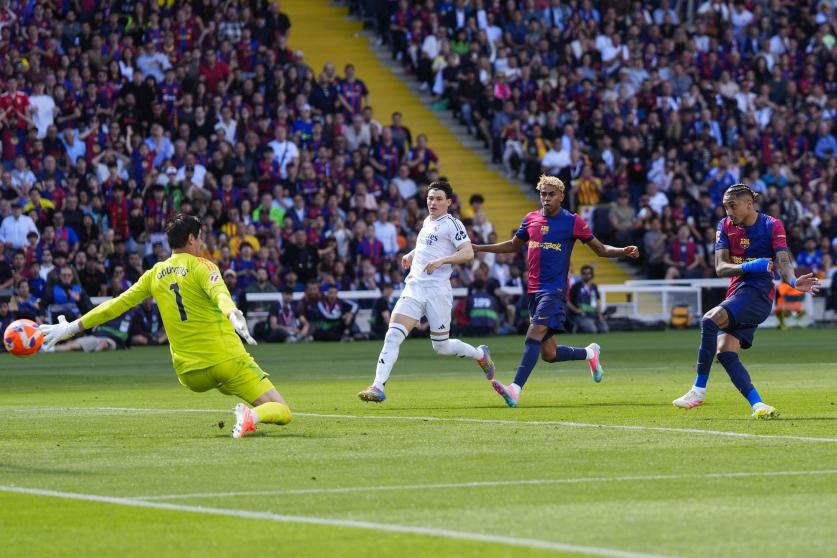 وواصل الضغط ليسجل هدفين متتاليين في الدقيقتين 32 و34 بواسطة لامين يامال ورافينيا، ليقلب الطاولة على الميرينغي.