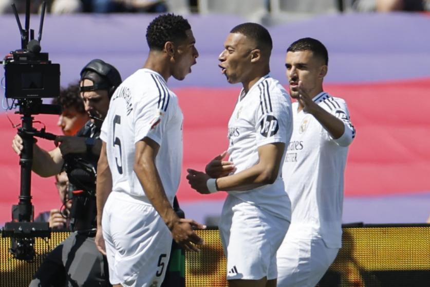 افتتح النجم الفرنسي كيليان مبابي التسجيل مبكرًا لريال مدريد، حيث سجل الهدف الأول من ركلة جزاء في الدقيقة الخامسة.