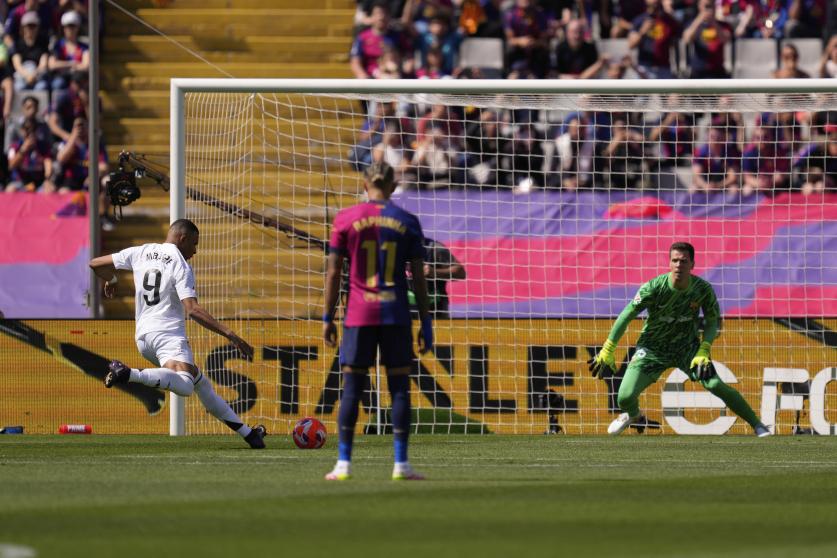 وفي الشوط الثاني، قلص مبابي الفارق مجددًا لريال مدريد بتسجيله الهدف الثالث له ولفريقه في الدقيقة 70، ليكمل الهاتريك، لكن المباراة انتهت بتفوق برشلونة بنتيجة 4-3، ليقترب من حسم لقب الليغا رسميًا.
