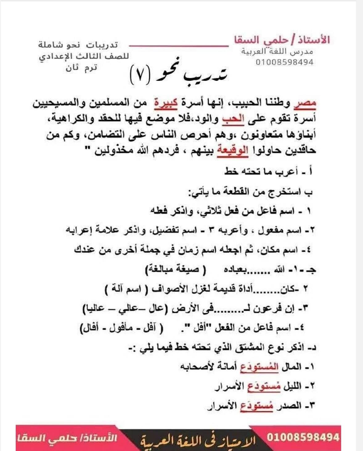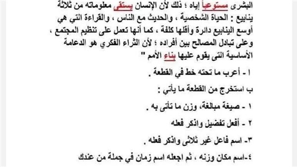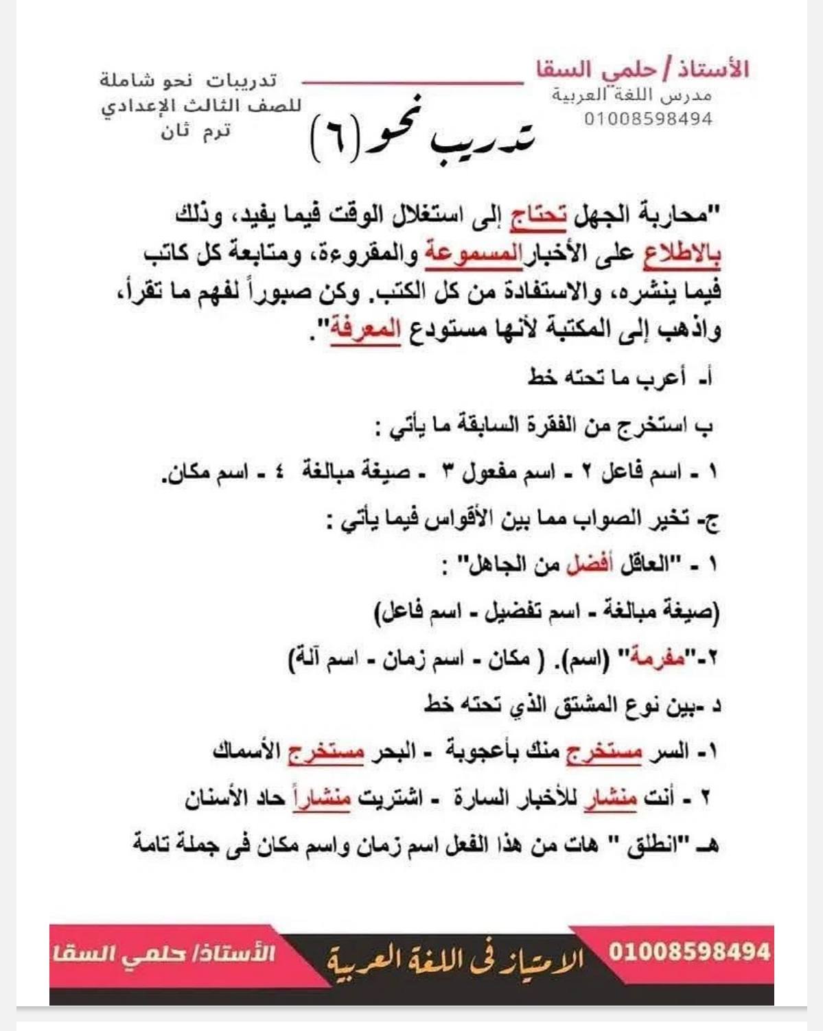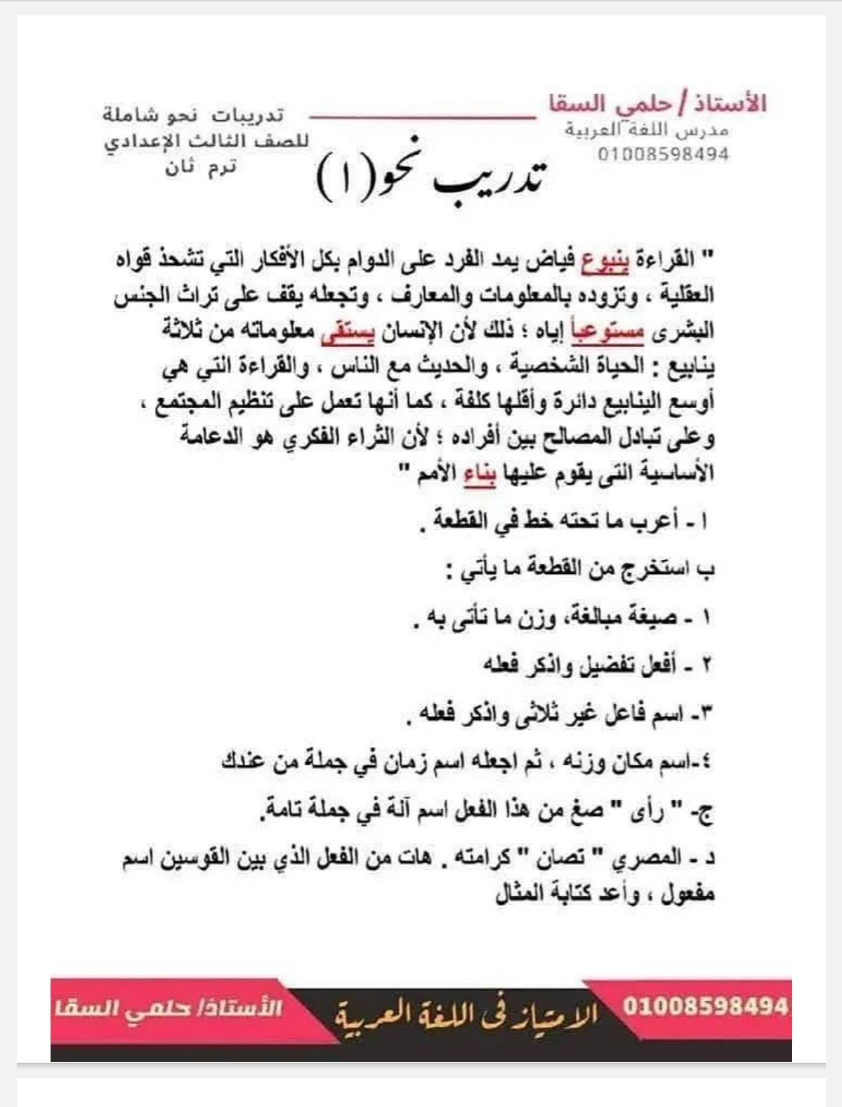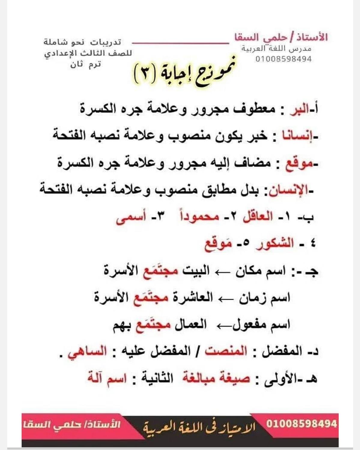 - مراجعات نهائيه امتحان اللغة العربية ثالثة إعدادي