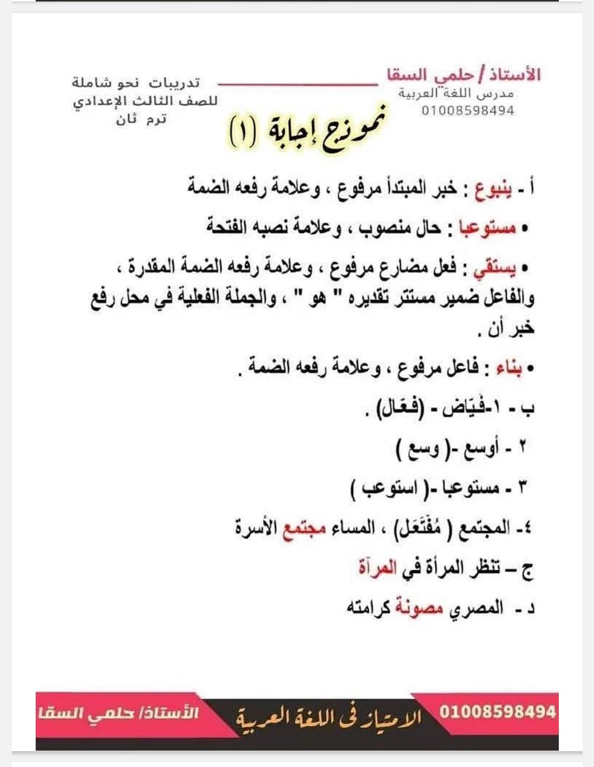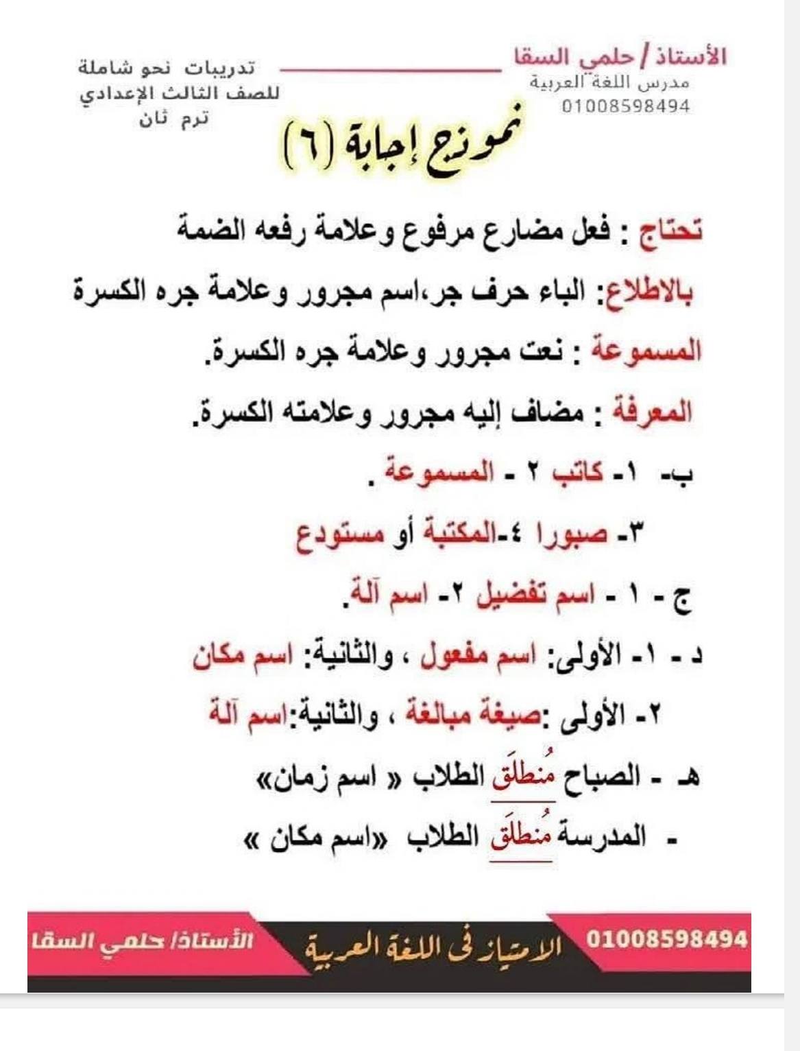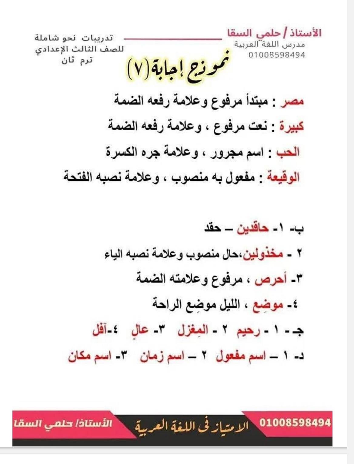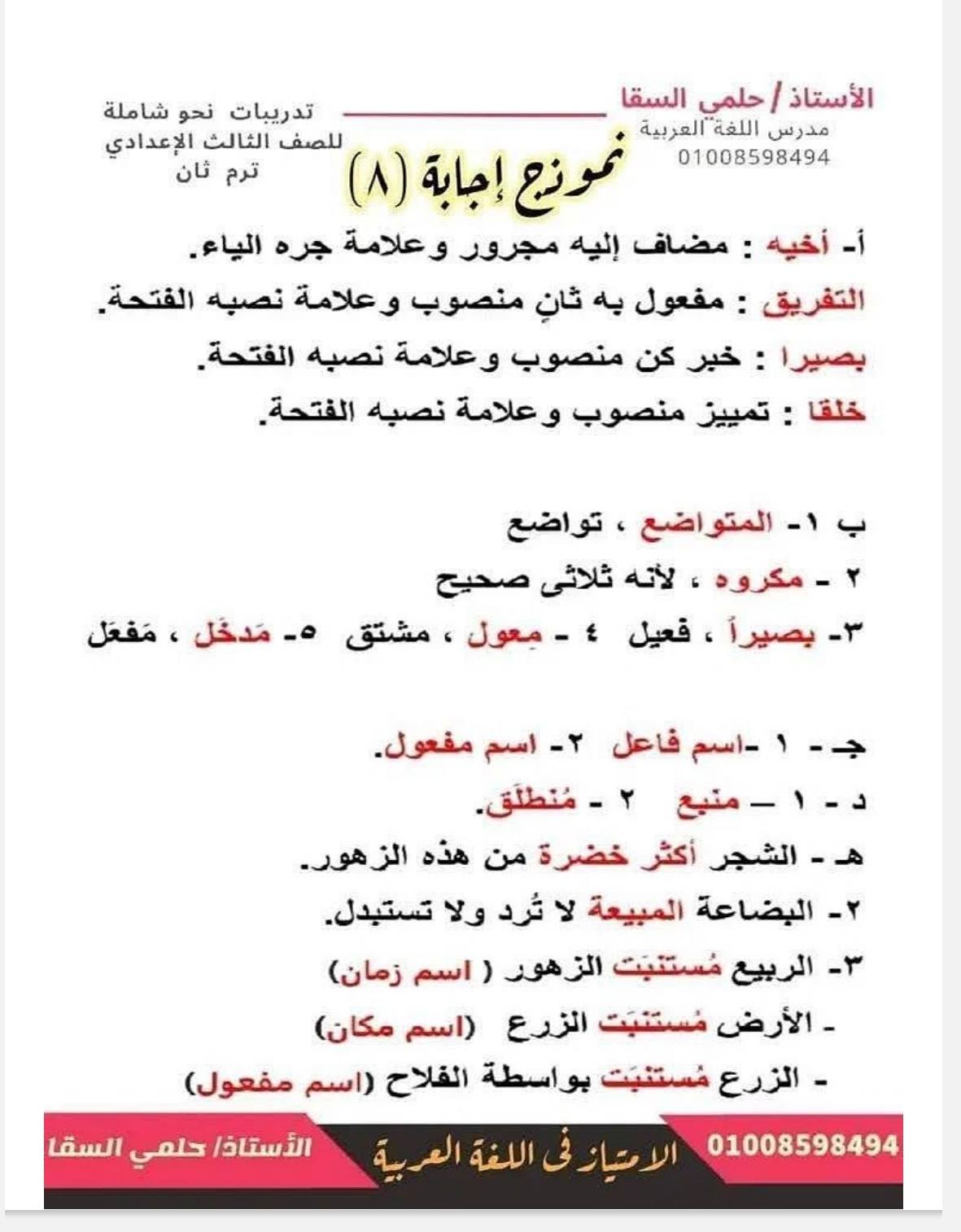- اللغة العربية مراجعات نهائية الصف الثالث الإعدادي