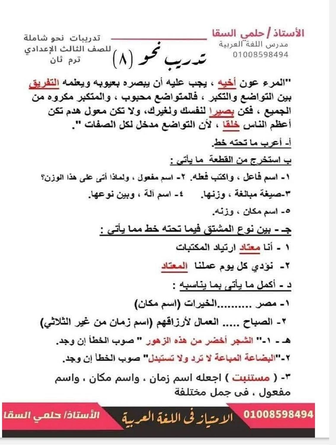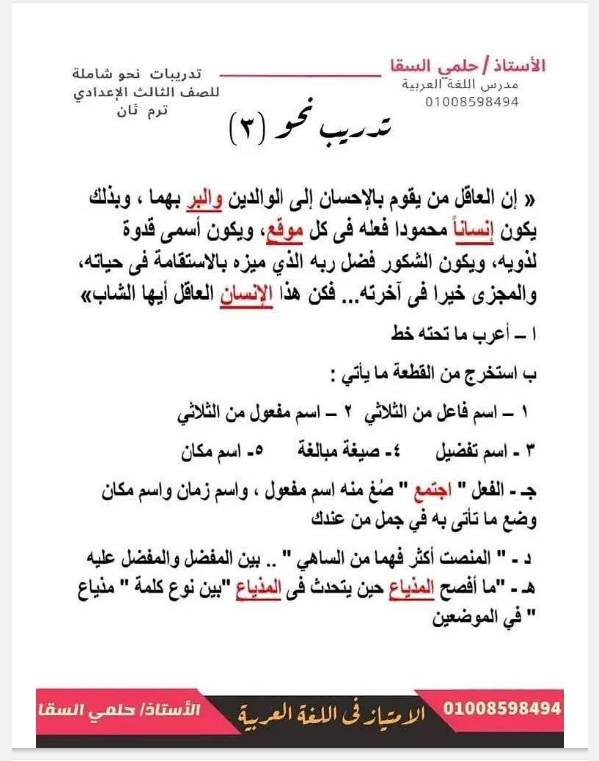 - اللغة العربية الصف الثالث الإعدادي