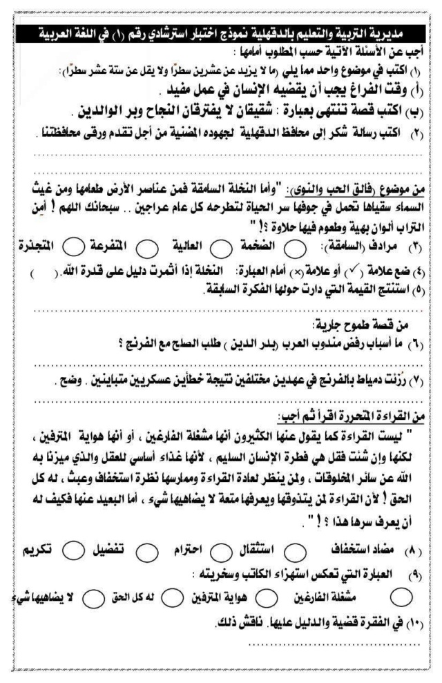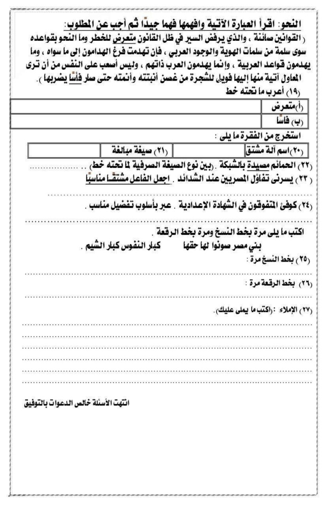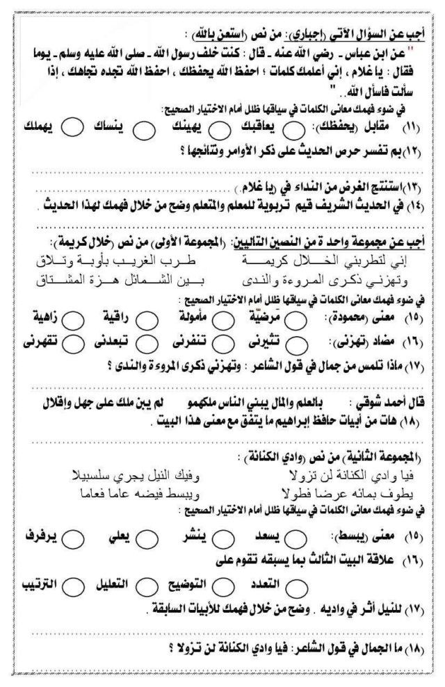 - امتحان لغة عربية اوعى تفوتها الشهادة الاعدادية