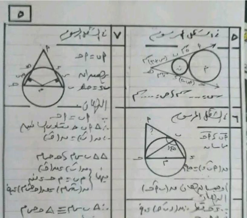 - أسئلة اختبار هندسة ثالثة إعدادي