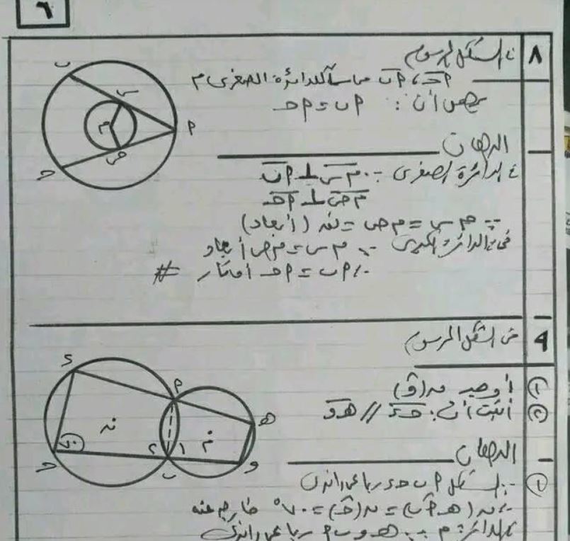- حل امتحان هندسة ثالثة إعدادي المنوفية بالتفصيل