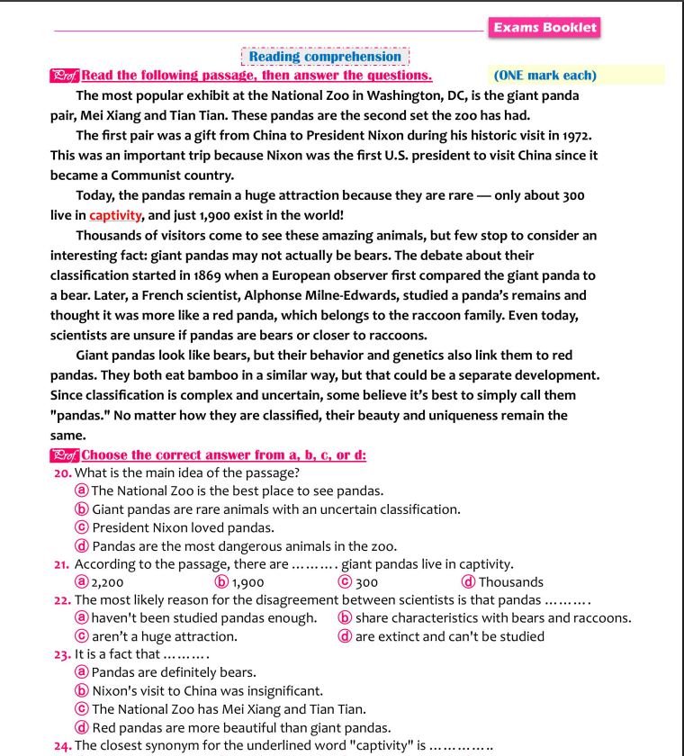 10 نماذج في اللغة الإنجليزية بالاجابات لـ الثانوية العامة 2025