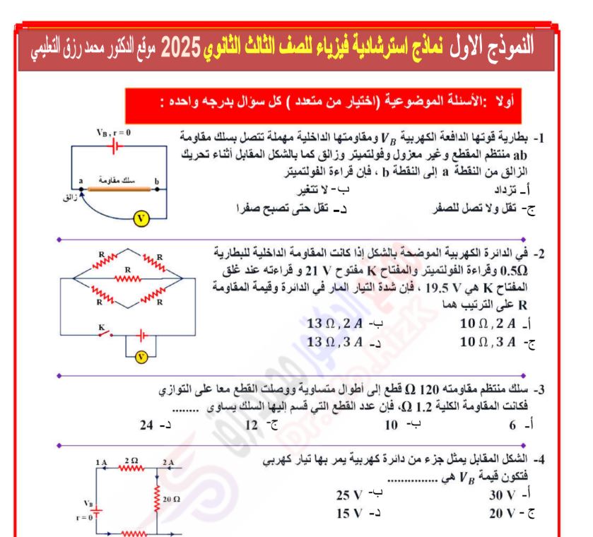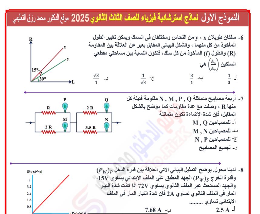 الثانوية العامة 2025.. حل النموذج الاول في الفيزياء أوعى تفوتها