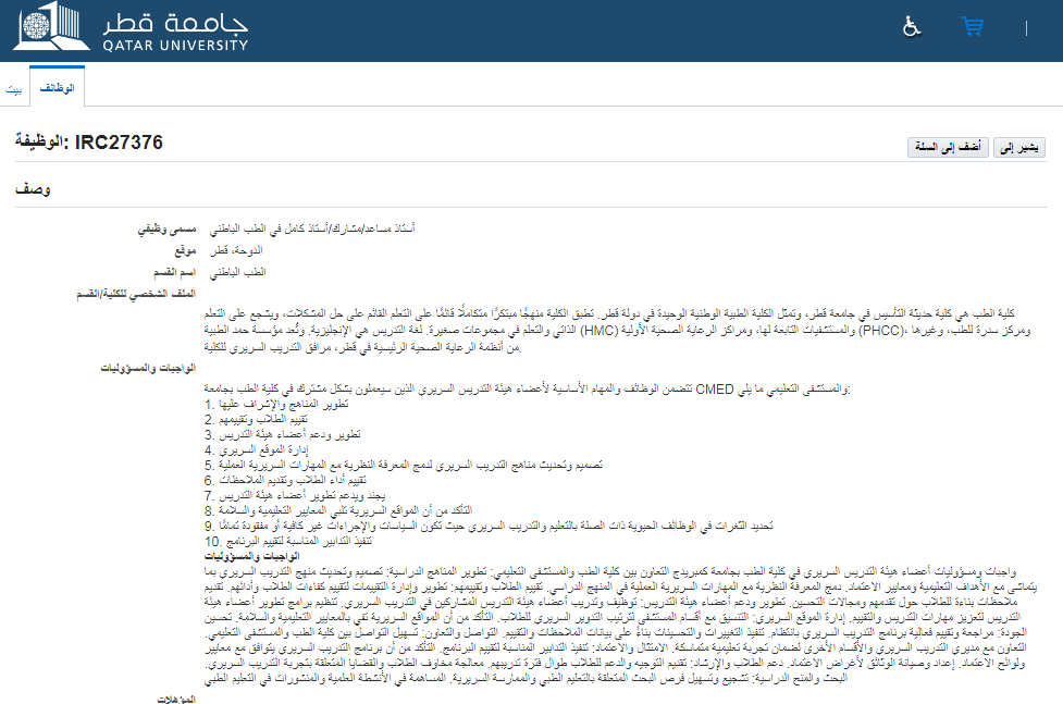 كيفية التقديم على وظيفة أستاذ طب باطني في جامعة قطر