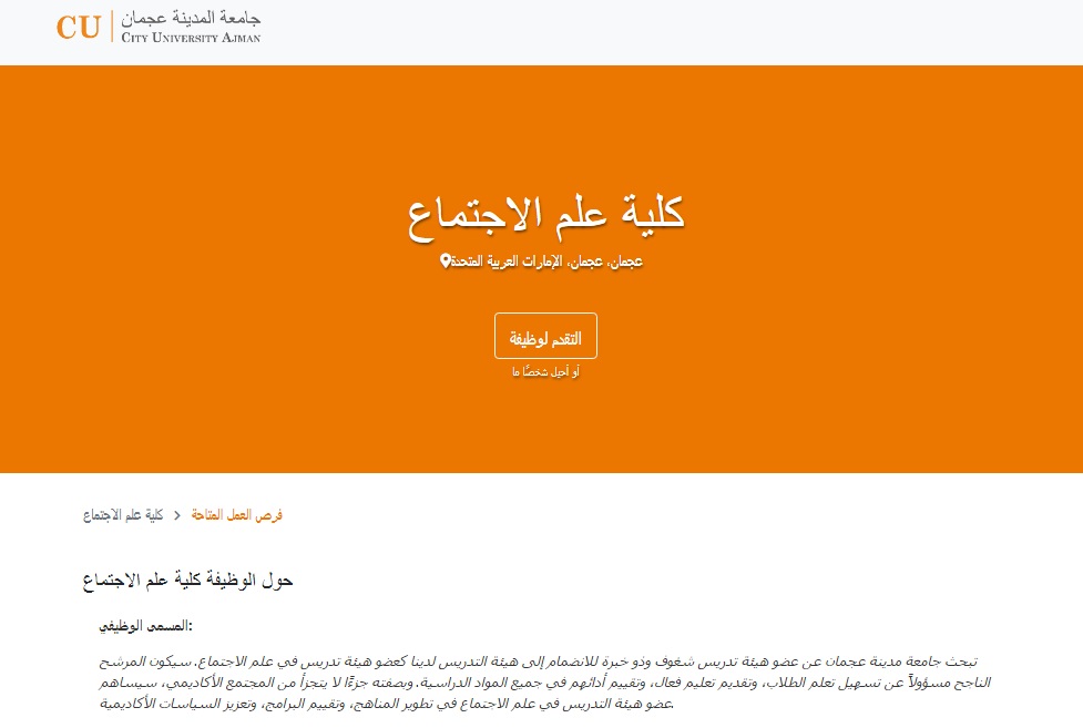 إذا كنت مهتمًا بـ فرص العمل الأكاديمية في الإمارات وترغب في الانضمام إلى جامعة رائدة مثل جامعة مدينة عجمان، يمكنك الآن التقديم على وظيفة عضو هيئة تدريس في علم الاجتماع عبر النقر على زر التقديم وملء استمارة البيانات وإرفاق السيرة الذاتية.