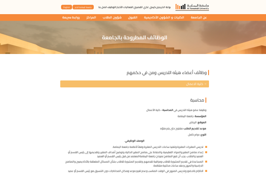 التخصصات المتاحة في وظيفة جامعة اليمامة