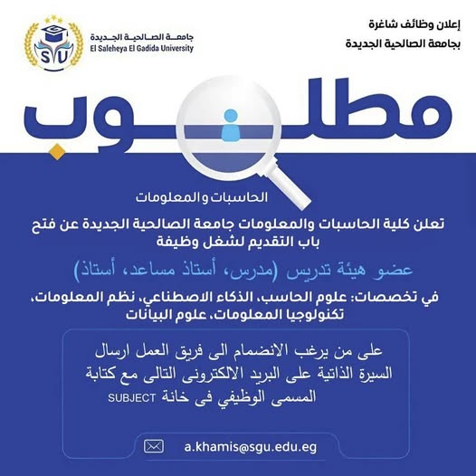 - أعضاء هيئة التدريس وظائف جامعة الصالحية الجديدة