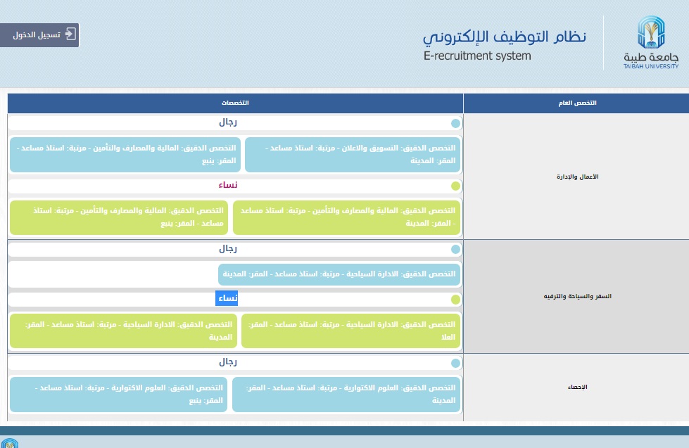 وظيفة جامعة .. أعلنت جامعة طيبة في المملكة العربية السعودية عن توفر عدد من الوظائف الأكاديمية الشاغرة بدرجة "أستاذ مساعد" في عدد من التخصصات للرجال والنساء، وذلك في مختلف فروع الجامعة، بما في ذلك المدينة المنورة، ينبع، والعلا.