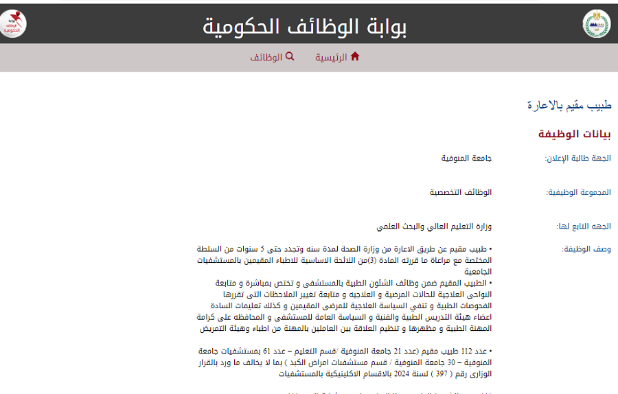 تفاصيل وظيفة جامعة المنوفية