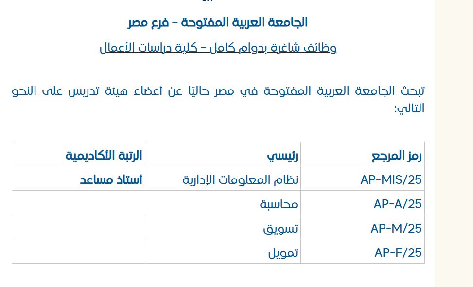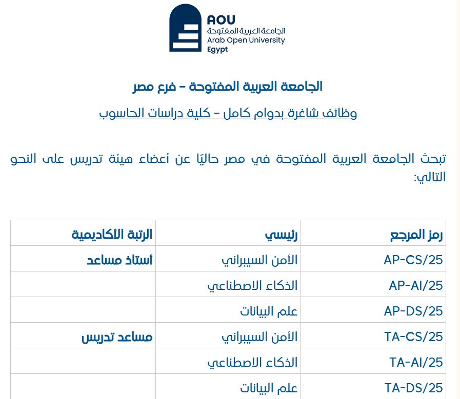 - وظائف شاغرة الجامعة العربية المفتوحة