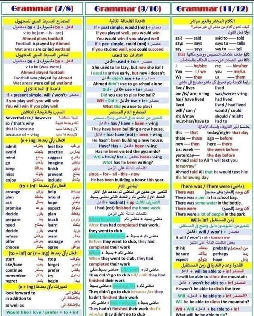 - جميع قواعد اللغة الانجليزية ترم ثاني الصف الثالث الإعدادي