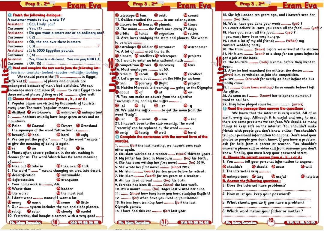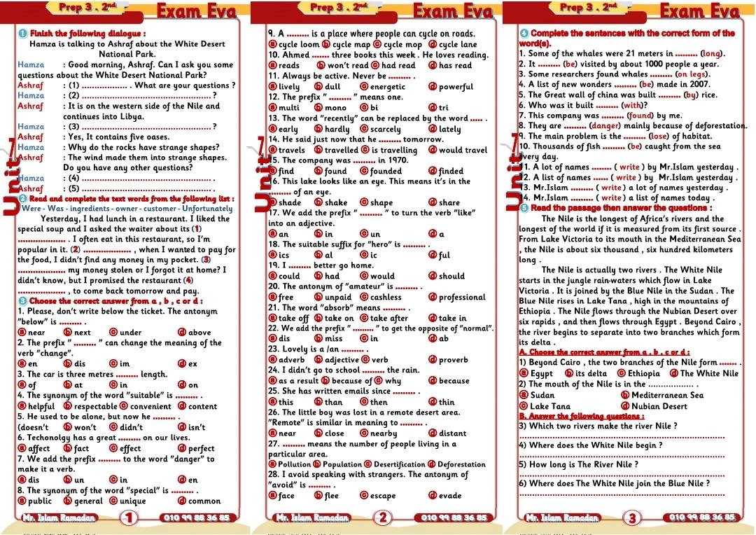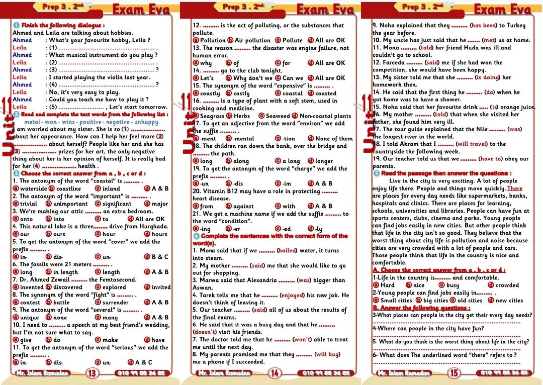 - حل كتاب الامتحان انجليزي ثالثه اعدادي